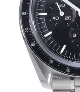 文字盤にはオメガとスウォッチのロゴを併記。ケース形状やサブダイヤルのデザインといったスピードマスターの特徴は大切に受け継ぎ、目盛りのドットオーバー90といったマニアックな部分まで、古参から新規ファンまで楽しませる腕時計となっております。